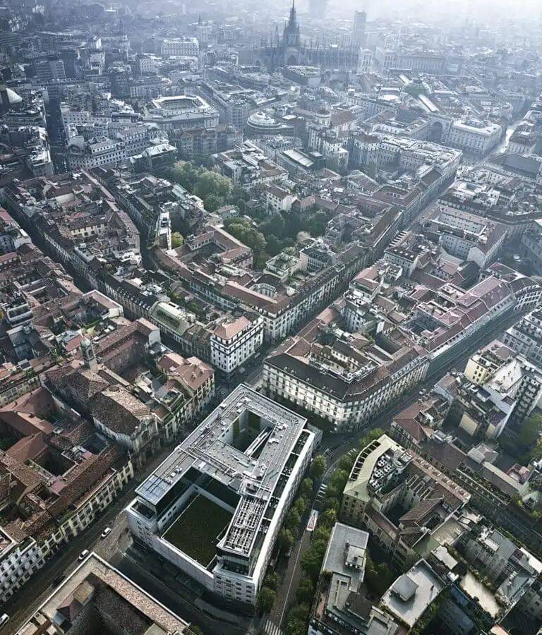 米兰曼佐尼街的原建建占地一个街区,楼层之间的楼板被切割以构成两头层,起首,乔治·阿玛尼同时委托两位世界出名建建师,为整个建建添加特色。